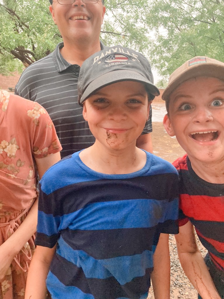 I looked up to see Sammy running from the truck towards us, holding his tie up in the air. Following closely behind were three, little, mischievous boys, all trying to grab his tie.