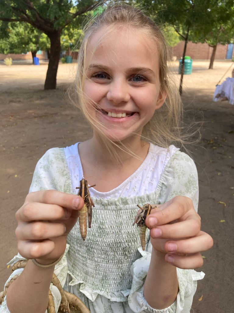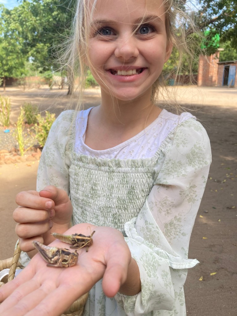 She is mute, but so sweet! Even though she can’t talk, we think she can hear. This last week she brought Abigail a gift – locusts! Abigail has come SO far! Last year she was screaming about the locusts, this year holding them. She has despised bugs since she was little! She wouldn’t eat at a picnic table once because she saw an ant. But now she’s holding bugs better than me!