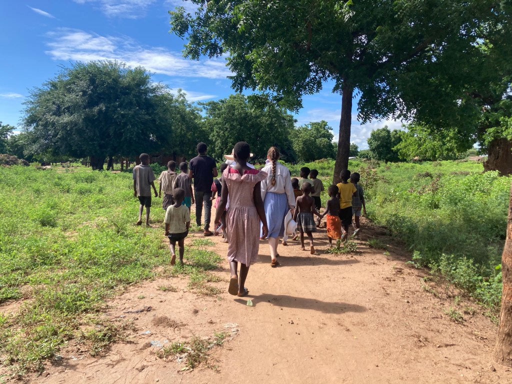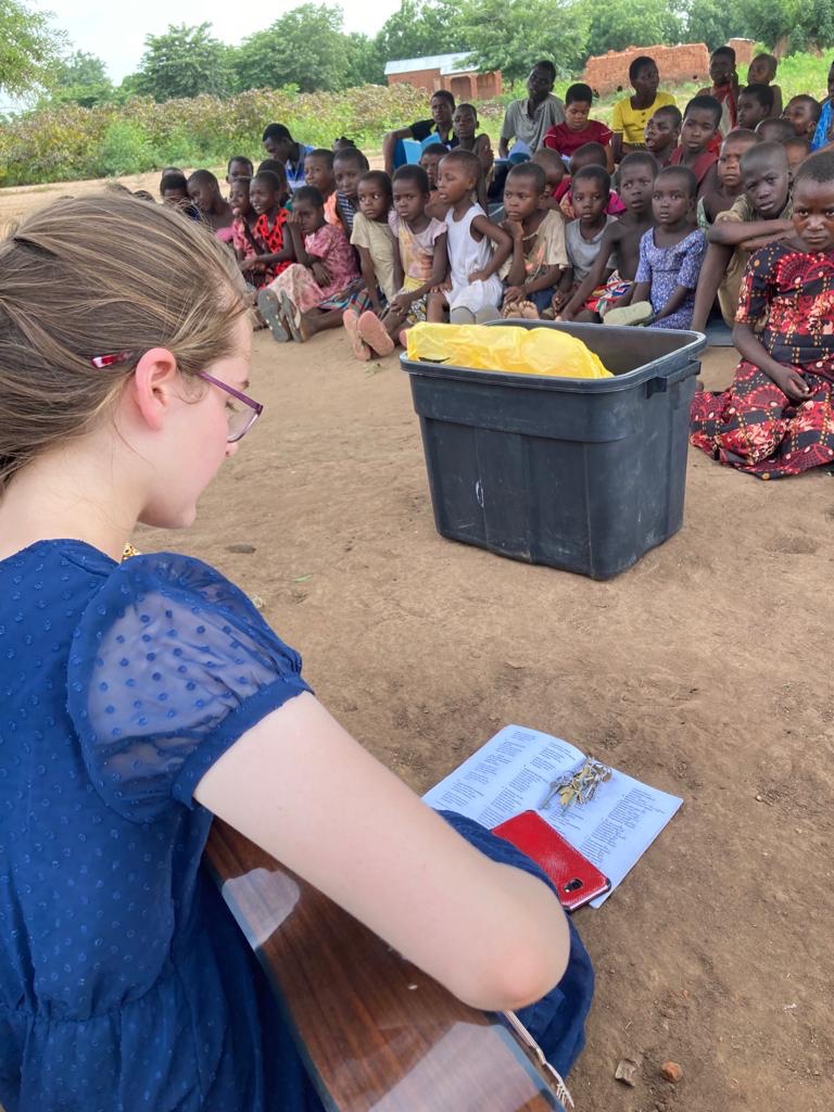 Sunday after our services, we went back to the that village for the Bible study. We started under the big tree with the adults so Lydia could play guitar and Brother Shadrach could lead singing. He does a very good job leading singing. Then we led the kids to the tree in front of the chief’s for their lesson.