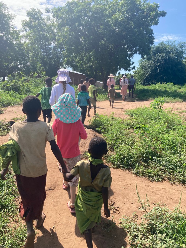 The first picture is of our village. You can see the mountains of Mozambique and it is gorgeous! The rest are in Phokera today. We always have a group of kids who tag along. Brother Shadrick had Anna and Lydia pull them aside and sing with them while we witnessed.
